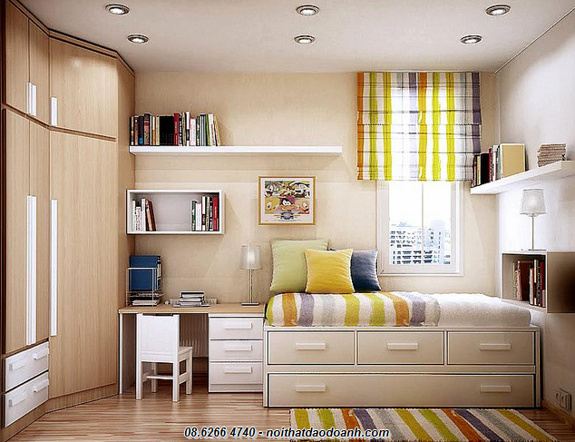 - Nên chọn giường có ngăn kéo hoặc giường tầng để có thêm không lưu trữ đồ đạc.